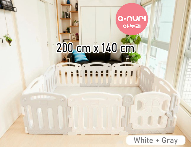 Anuri – Korea Elegant Baby Room Play Yard Baby Safety Fence Guard White + Grey 140 x 200 cm