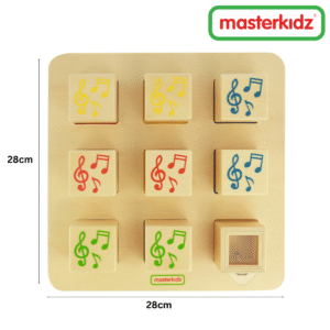 A lovely set for designed to improve the sense of listening and sound differentiation. There are 4 pairs of cubes each making a distinctive sound when shaken. Children are encouraged to listen carefully and to match the cubes together when they hear the same sound. There is an empty pot too, so that children can place different objects into it, to make their own shaker. Used with a blindfold adds an extra layer of concentration to the challenge.