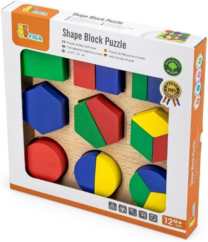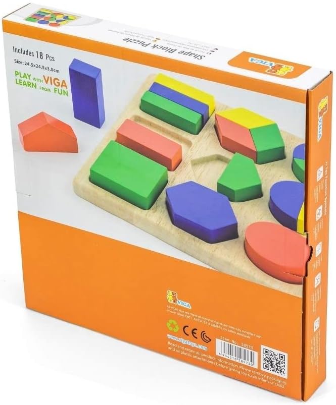 The Shape Block Puzzle was an excellent learning puzzle block as little ones will get acquainted with shapes, colours, sorting and counting. This shapes block puzzle are includes 18 pieces made of high quality wood with extra thick wooden pieces, easy for little ones to play with so, perfect introduction to puzzles!