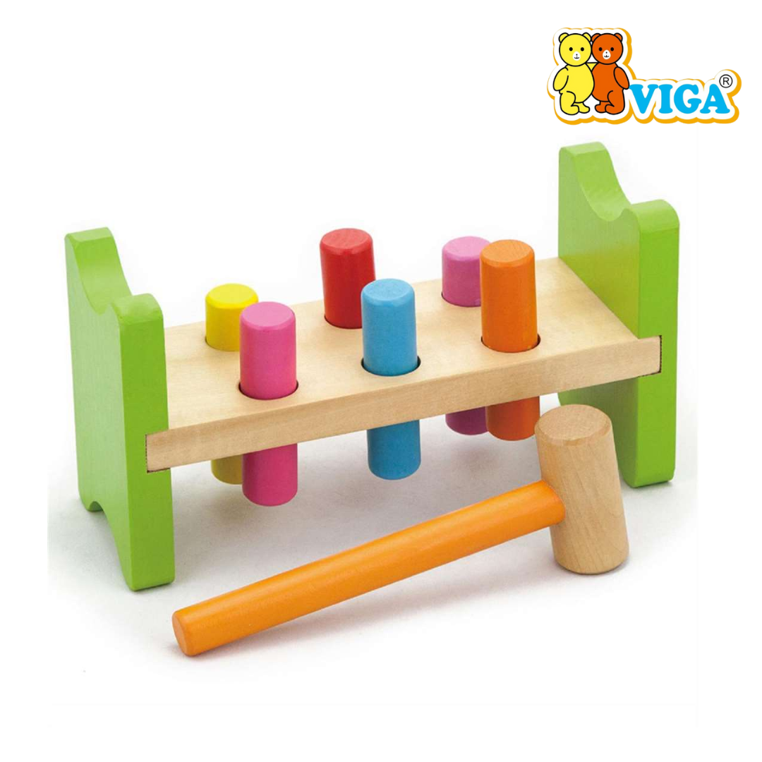 Perfect wooden pounding activity includes 6 brightly coloured pegs and a wooden mallet for endless skill-building entertainment. When you’ve finished hammering drive each peg through the holes in the wooden base, then flip the set over and star again. It encourages hand-eye coordination and manual dexterity.