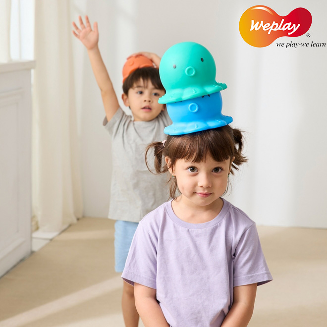 Children can place Weplay Up On Top steadily upon the head while standing or walking. They can stack 2 or 3 pieces together based on their abilities. It helps children improve their coordination and balance. It also brings challenges to the activities.